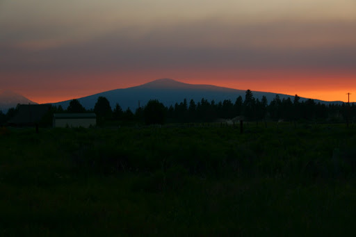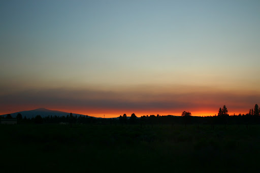 | Sunset at Water Wheel RV Park in Chiloquin, OR. There was a fire going on somewhere which caused a really cool haze during the sunset |